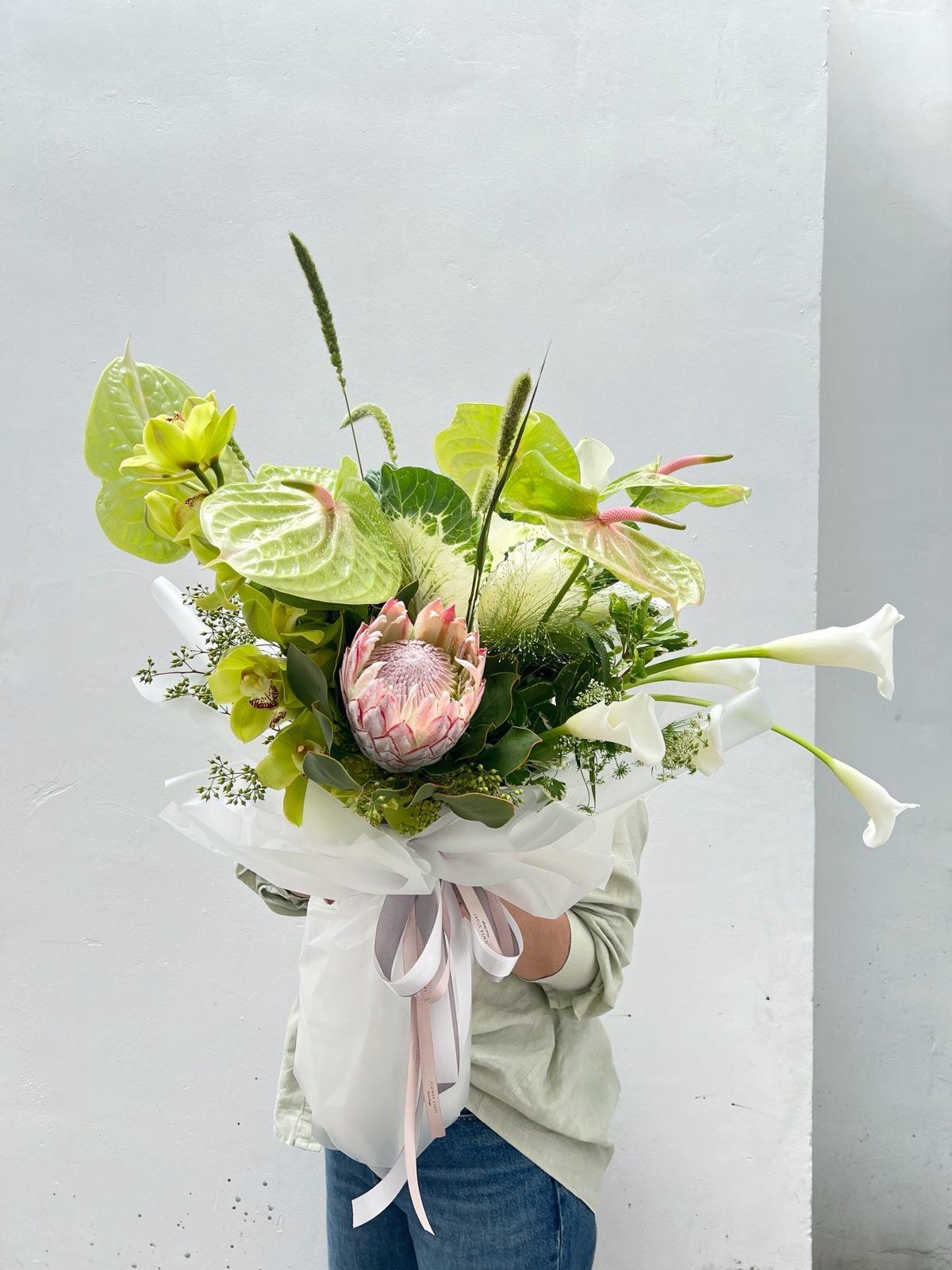 Each bouquet is unique and tastefully crafted, and flowers used will vary according to seasonality.